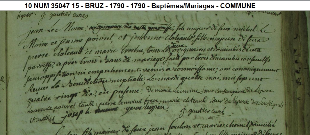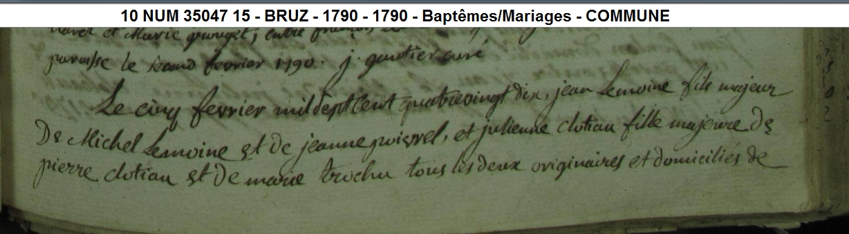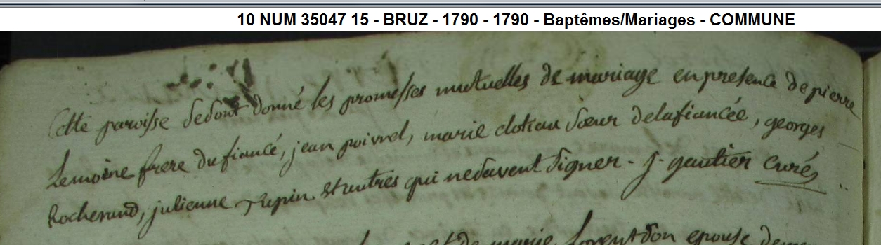 Promesse Mariage : 7 février 1790 à Bruz 35170