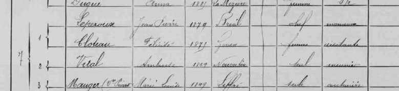 Union : CLOTEAUX Félicité Anne Marie ( 1875 - > 1906 )