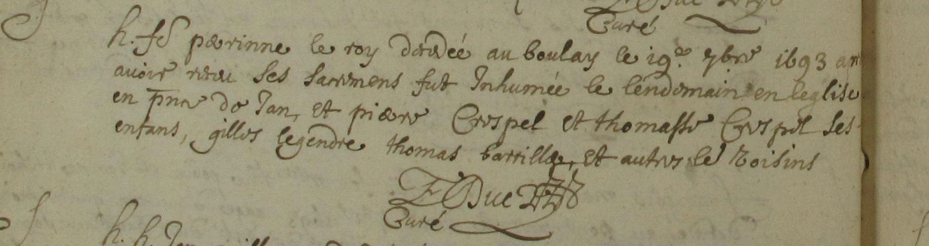 Inhumation : 19 septembre 1693 à Guichen 35580 le Boulay