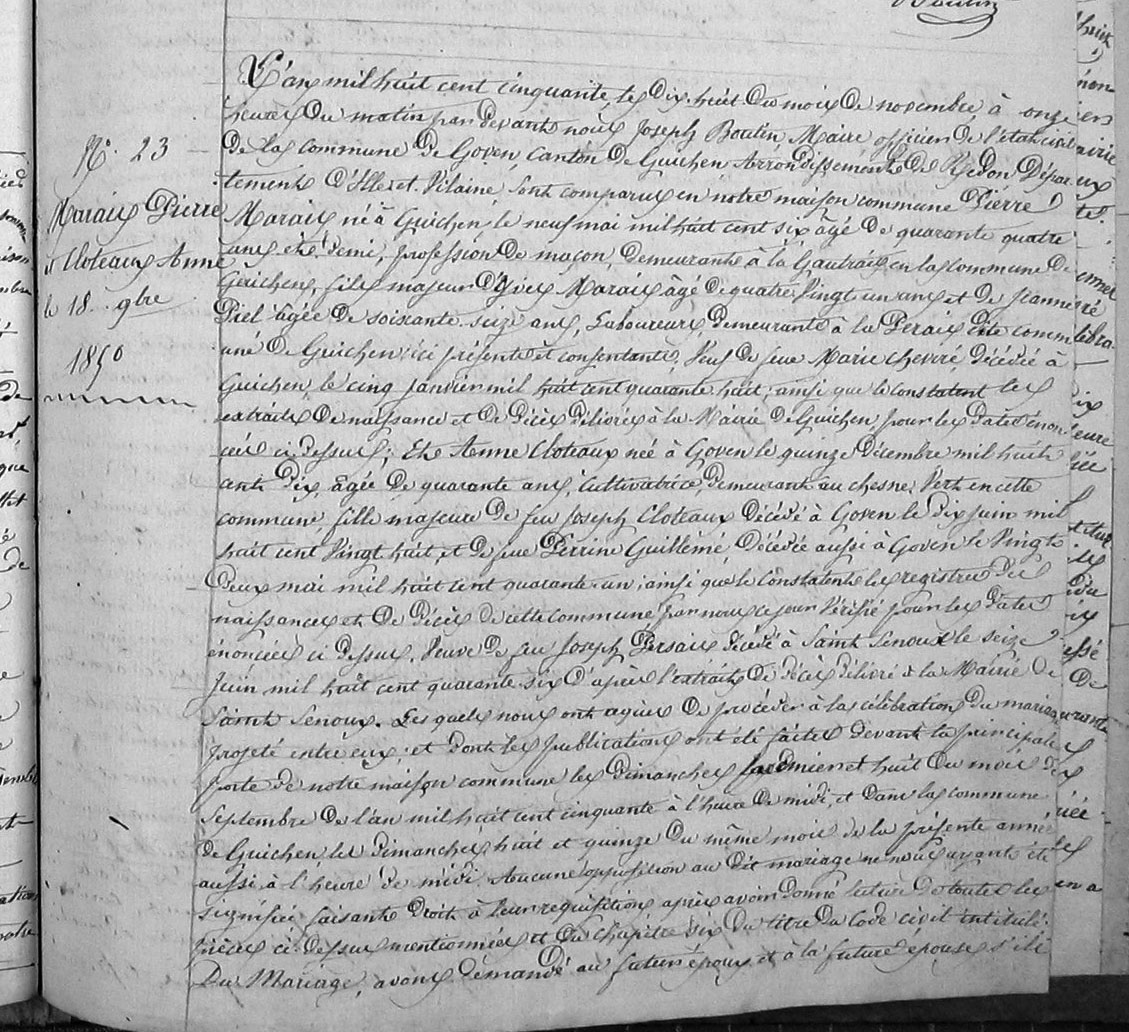 Mariage : 18 novembre 1850 à Goven 35580
