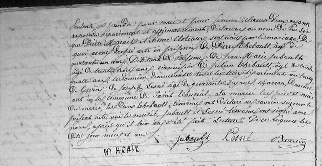 Témoins :JUBAULT Jean Marie ( (c) 1817 - > 1850 )