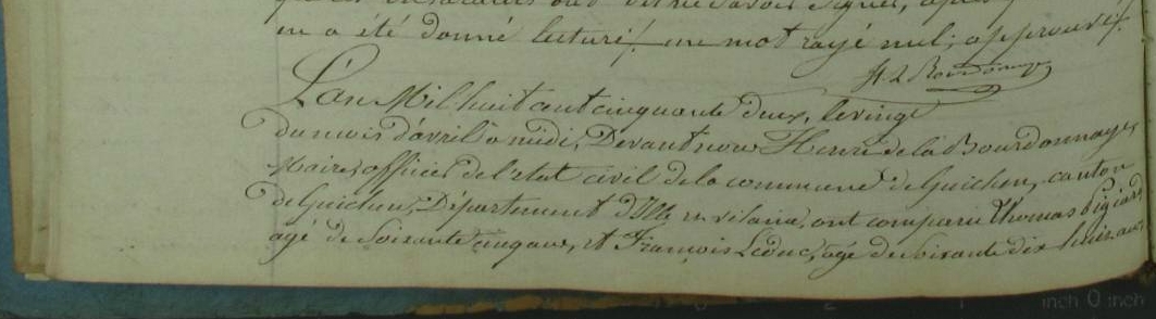 Mariage : 16 octobre 1835 à Guichen 35580