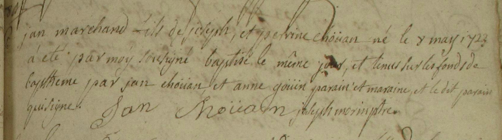 Témoins :CHOÜAN Jean ( < 1692 - > 1723 )