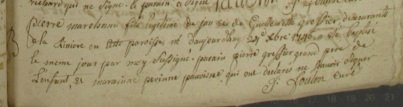 Père : MARCHAND Macé (Pierre) ( 1651 - > 1705 )
