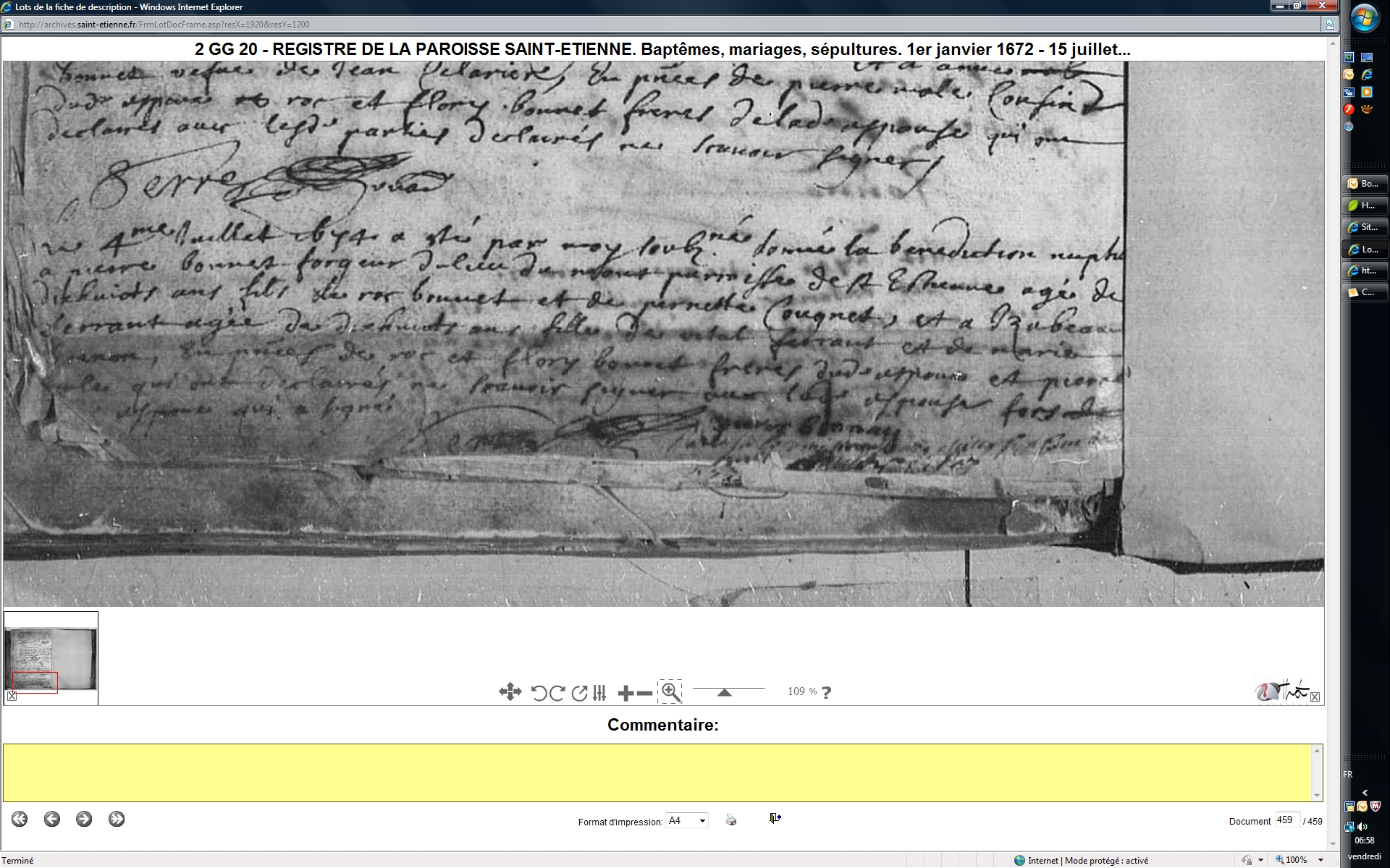 Mariage : 4 juillet 1674 à Saint-Étienne 42100 Paroisse Saint-Etienne