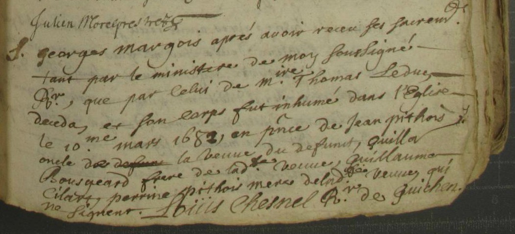 Autres enfants : MARGOIS Jean ( < 1661 - > 1708 )