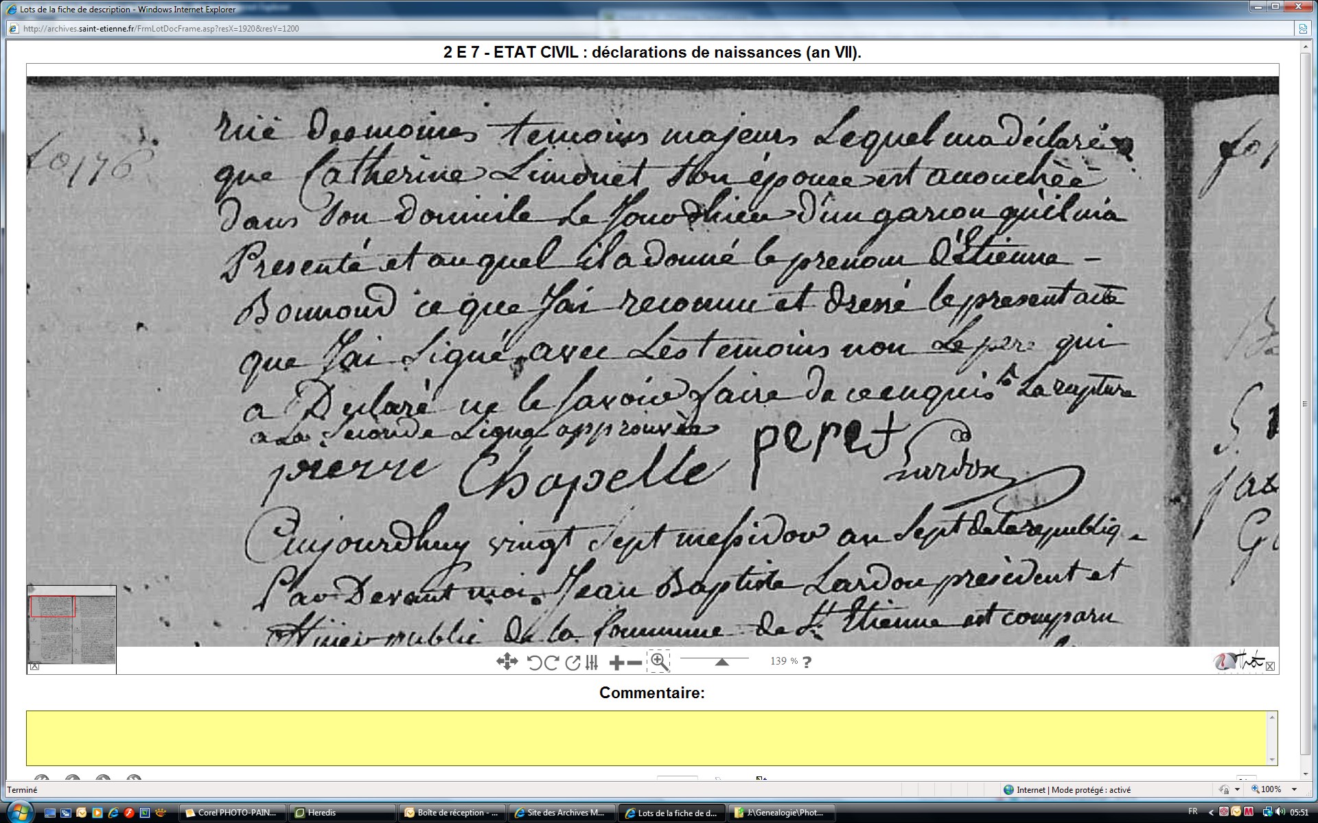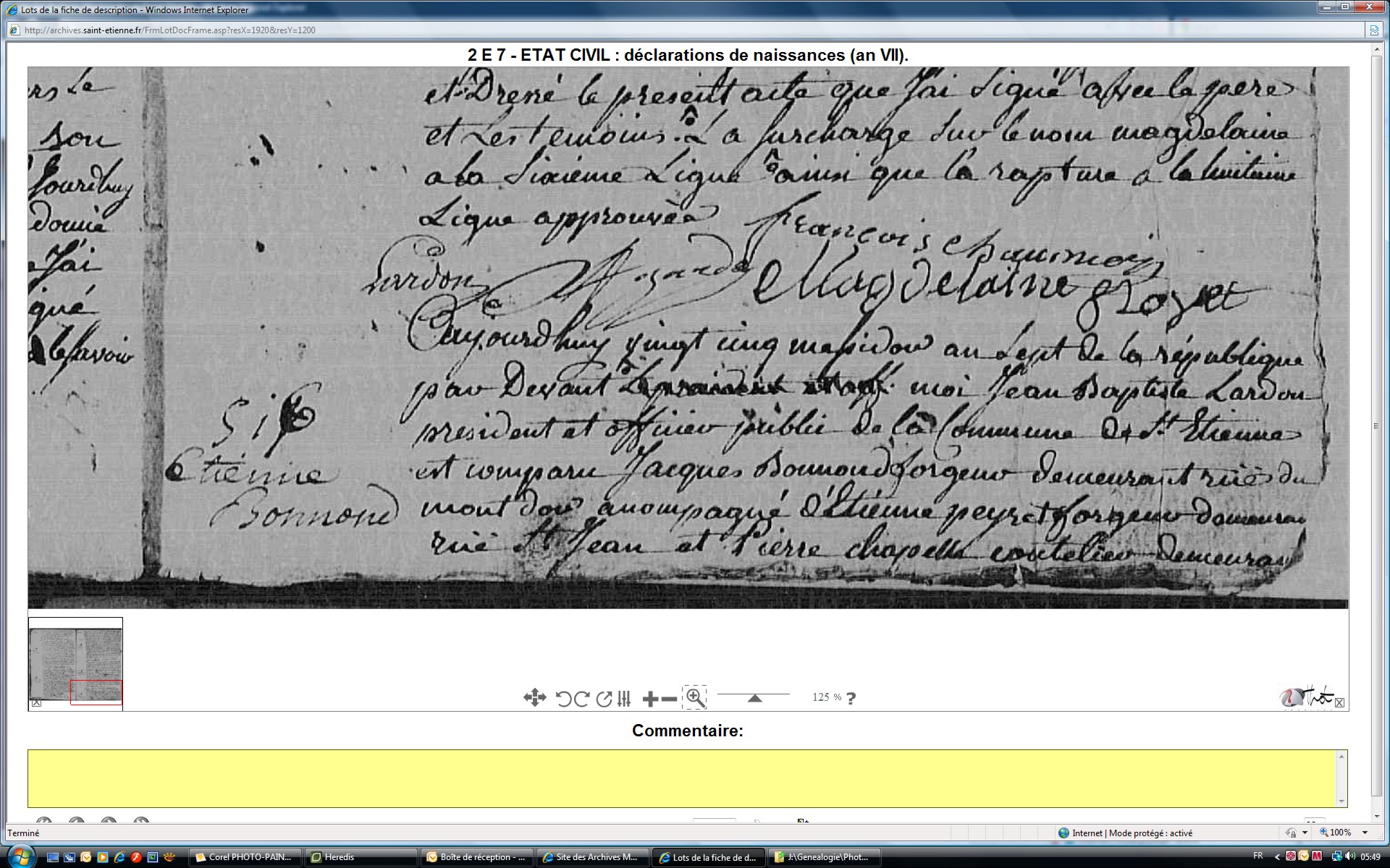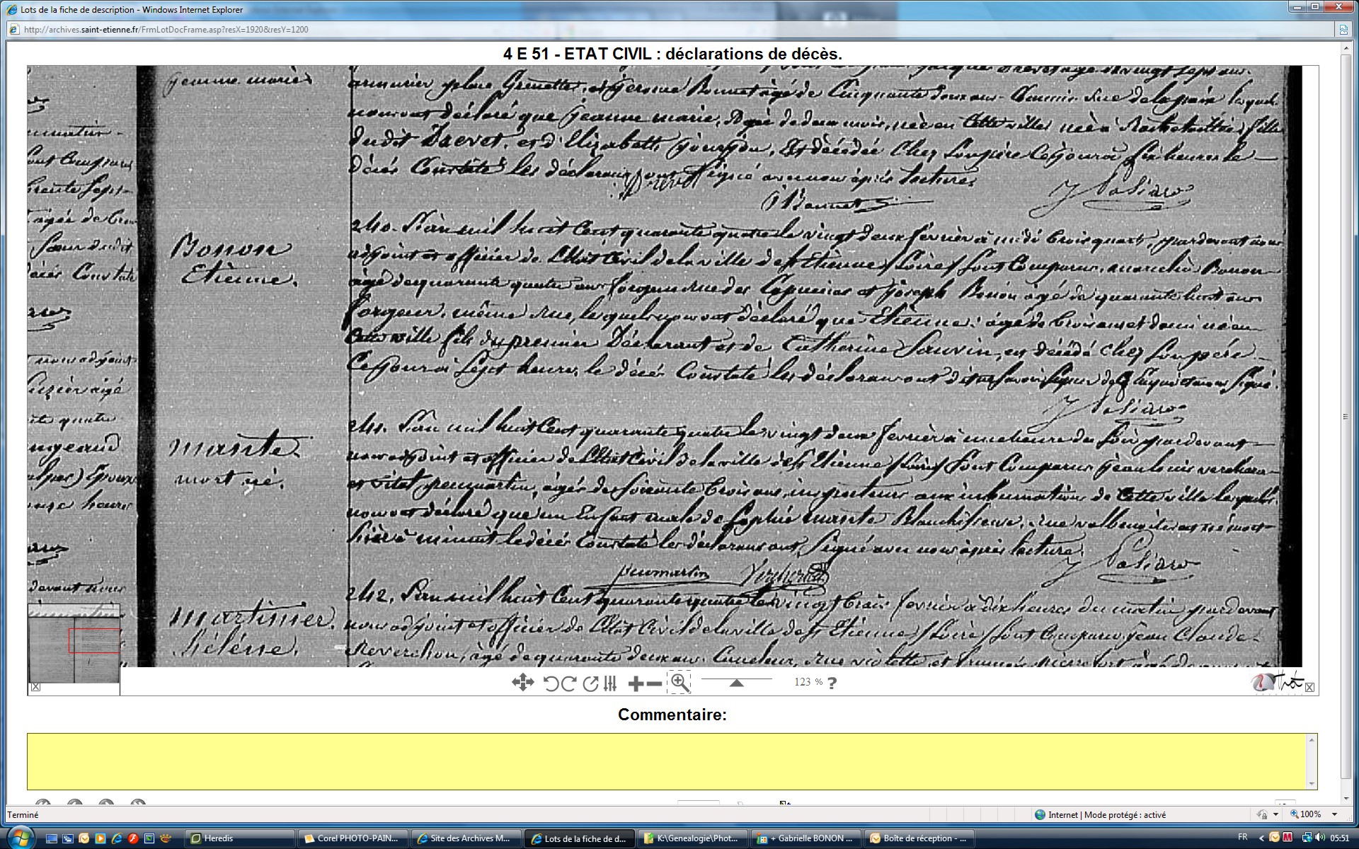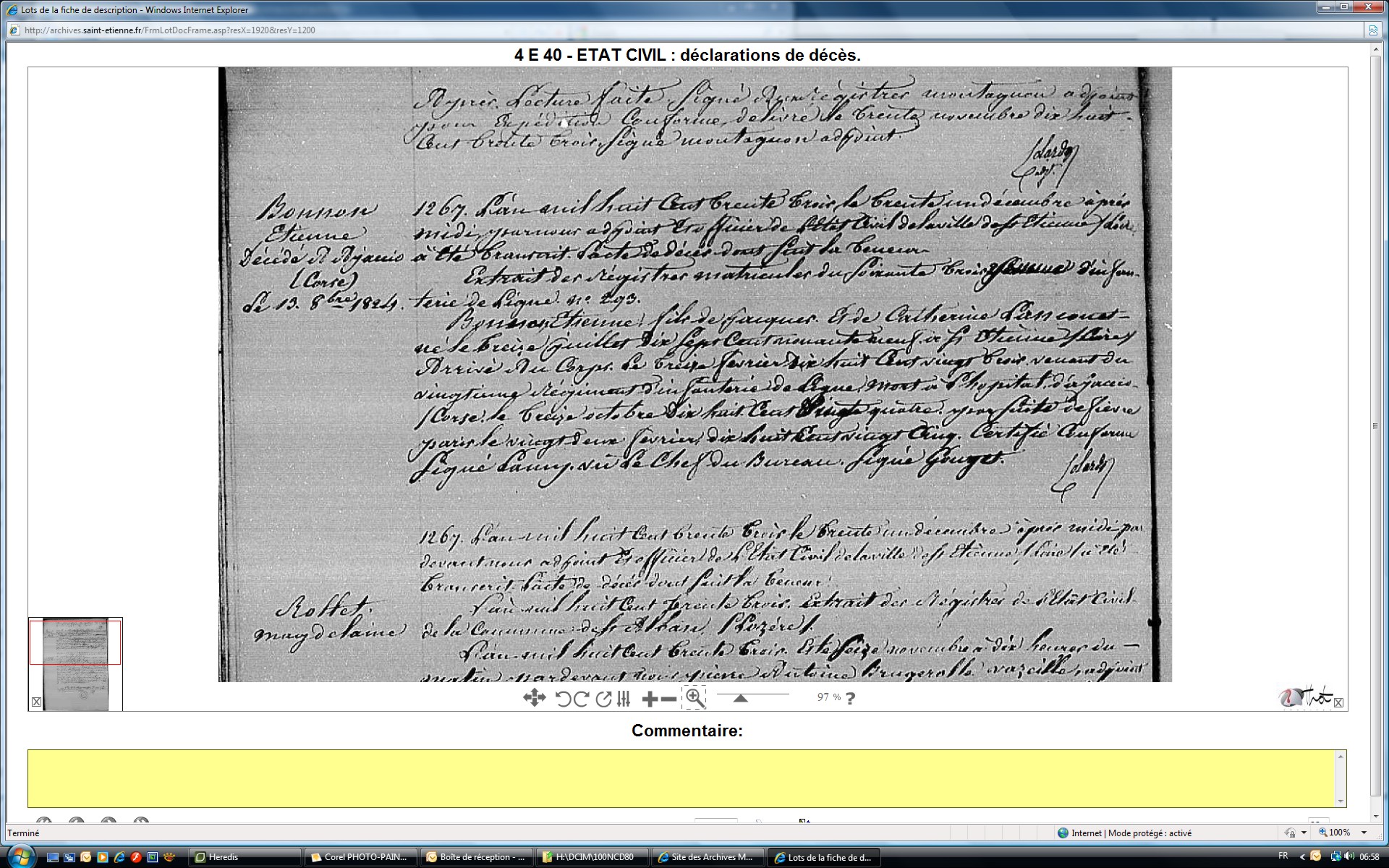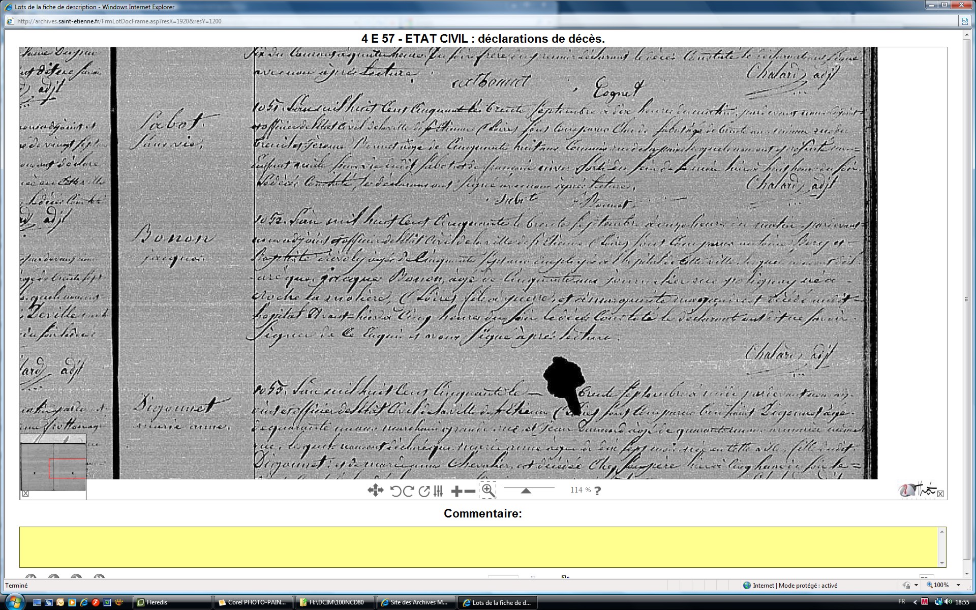 Naissance : calculée 1800 à Roche-La-Molière 42230 Décès : 30 septembre 1850 à Saint-Étienne 42100 rue Polignay