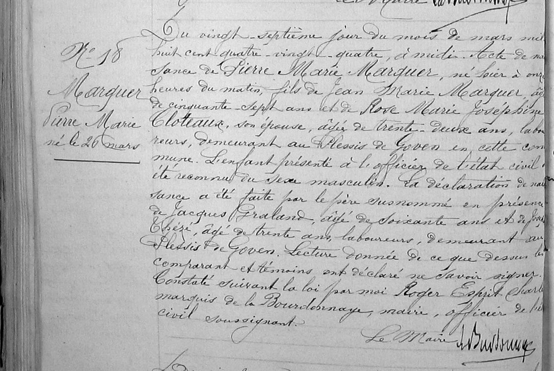 Naissance - 26 mars 1884 - Le Plessix - Goven (Ille-et-Vilaine)
