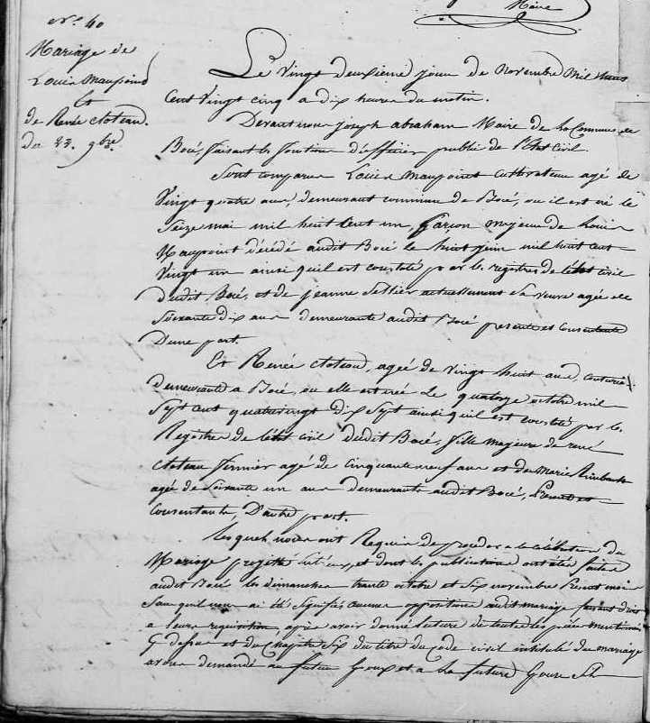 Naissance : 16 mai 1801 à Bocé 49150 Décès : après 1865