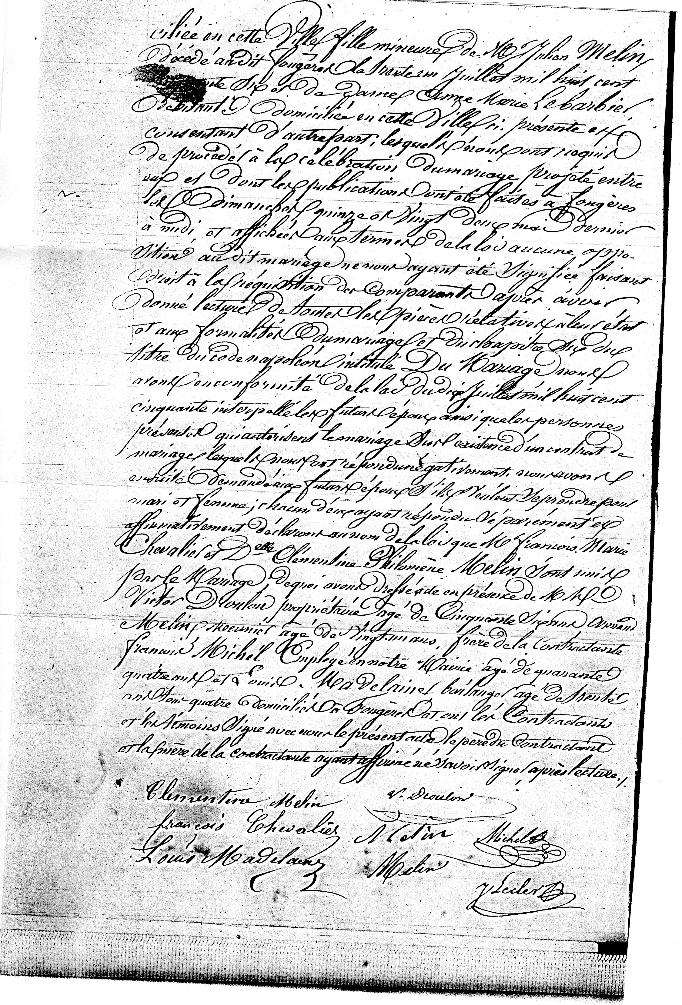 Nom epoux: MELIN Jean Marie/ Nom epouse: VANNIER / An: 1838 /