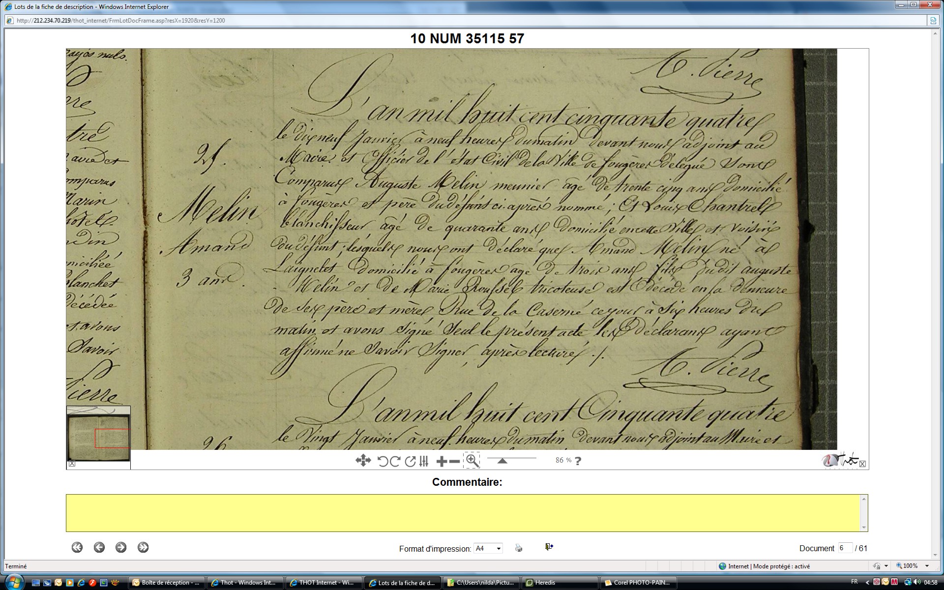 Décès : 19 janvier 1854 à Fougères 35300 Rue de la caserne