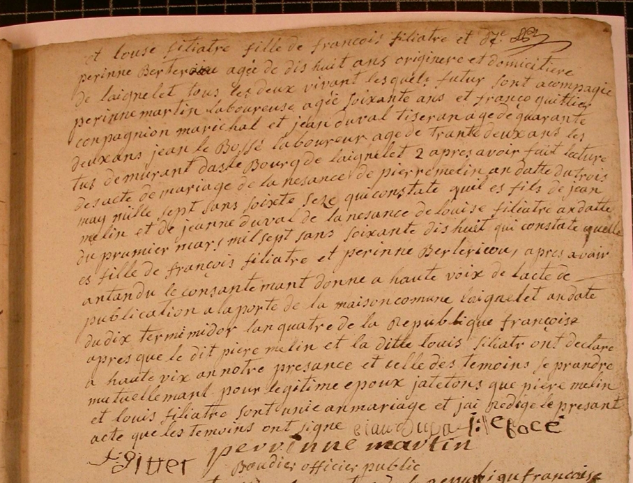 Nom epoux: MELIN Ollivier/ Nom epouse: LOUVEL / An: 1700 /