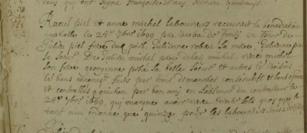 Témoins :PIEL Julien ( 1667 - > 1699 )