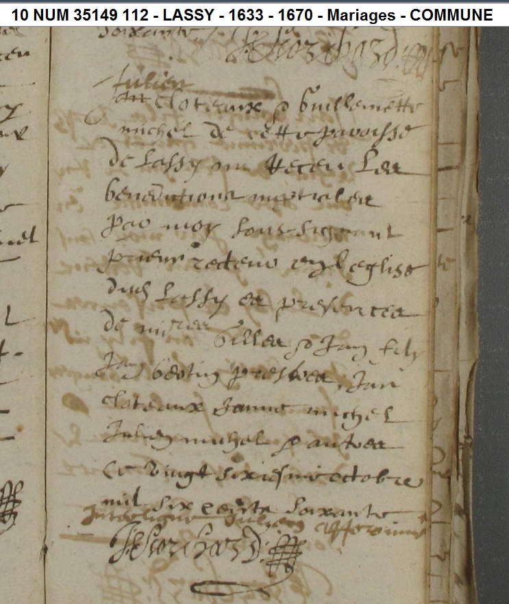 Mariage : 26 octobre 1660 à Lassy 35580