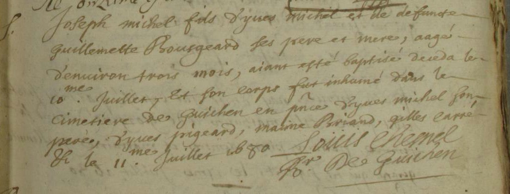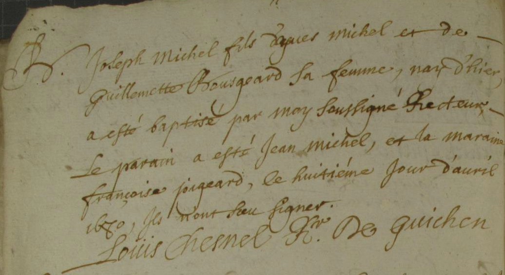 si parrain de Joseph CHEREL le 16/3/1682 Guichen, il signe