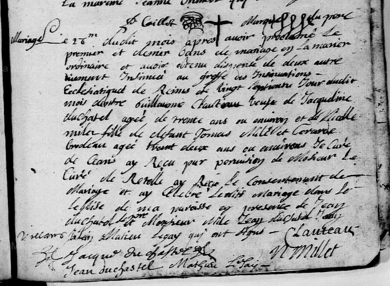 Mariage : 27 décembre 1694 à Reims 51100 Saint Etienne