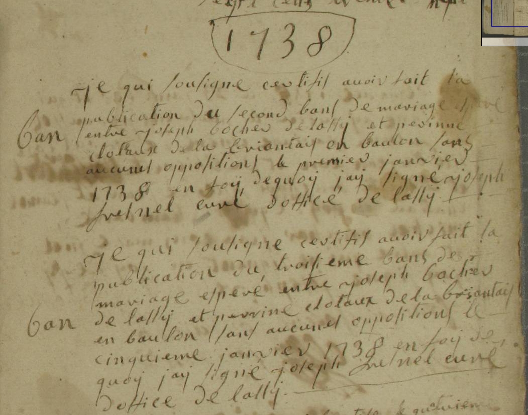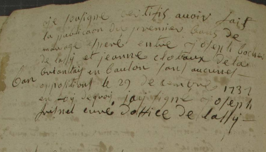 1er Ban : 29 décembre 1737 à Lassy 35580