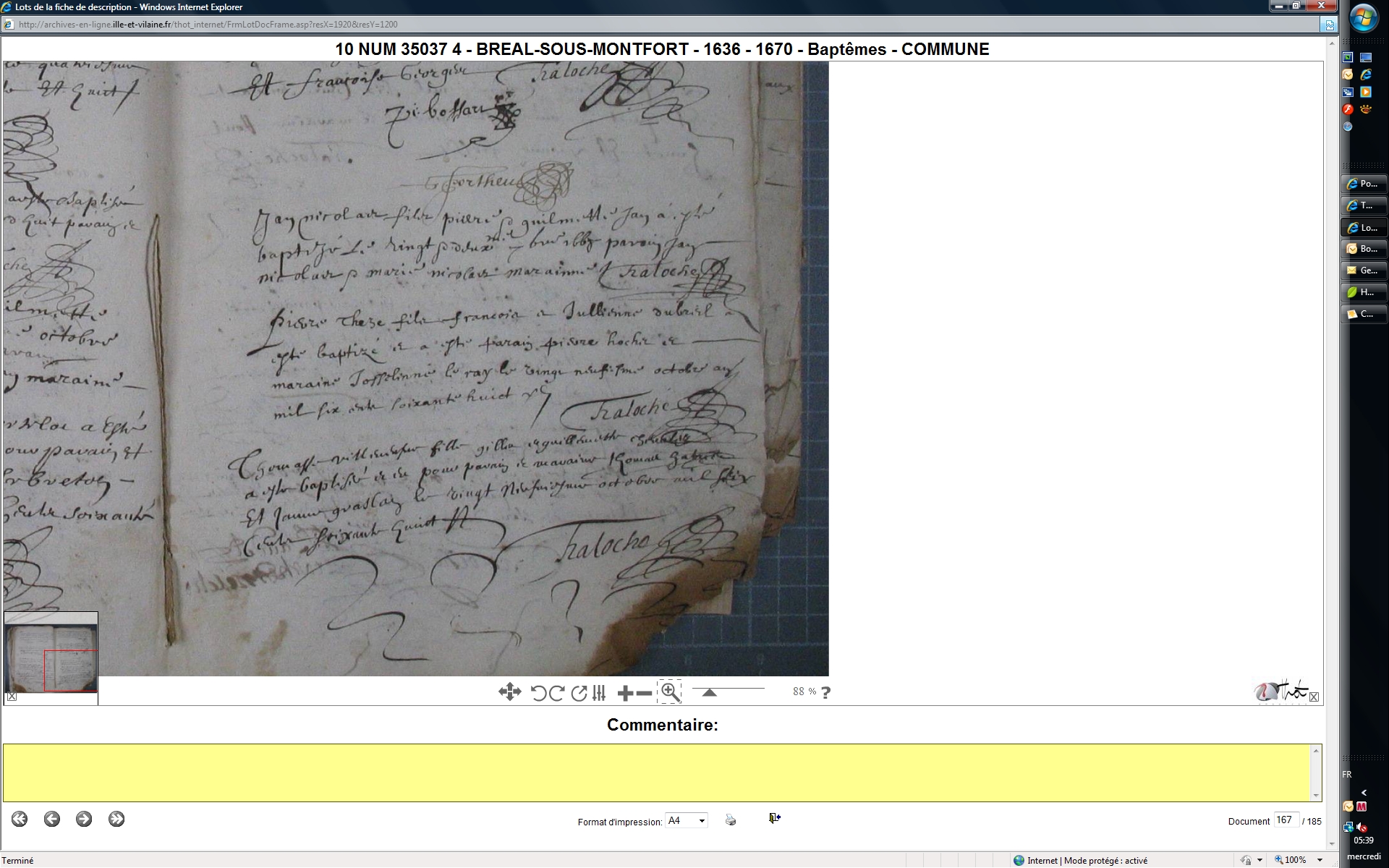 Naissance : calculée 1631 à Bréal-Sous-Montfort 35310