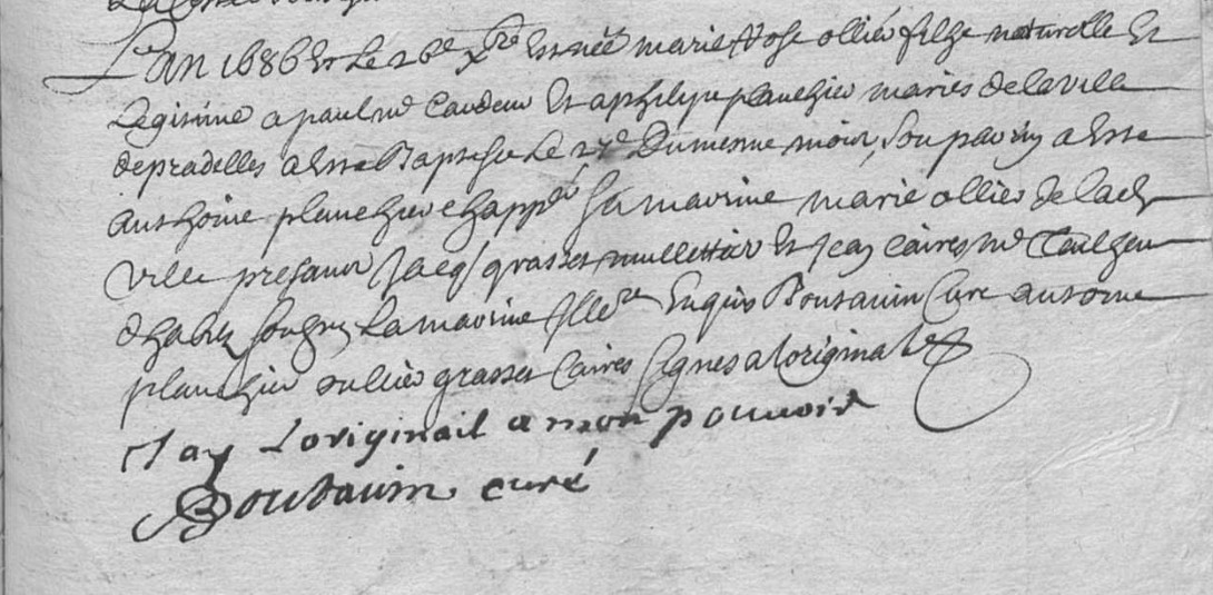 OLLIER BOISSONADE 1706 PRADELLES SUR GENEABANK M : présents Sr Claude Duclaux, Pierre Vignon, Pierre Pelade et Michel Cartalade signés.