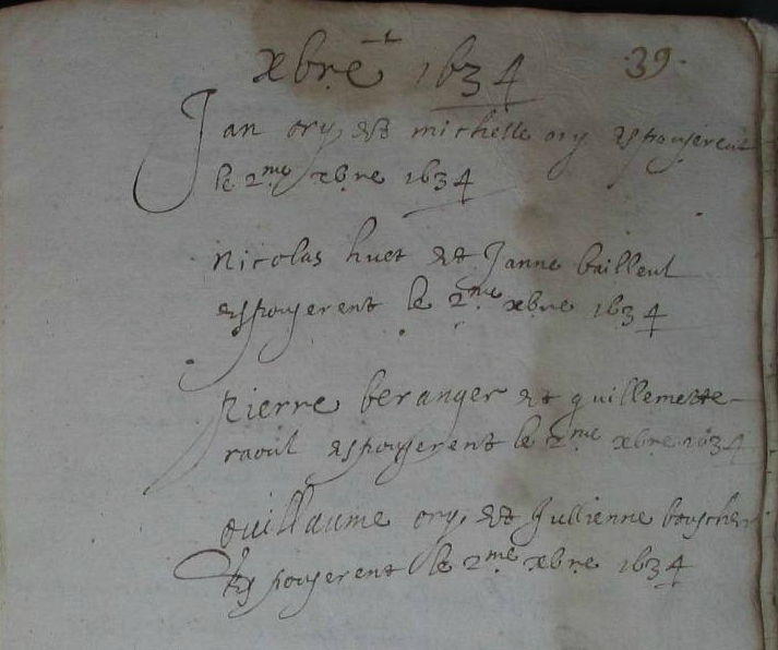 Père : ORY Sébastien ( < 1616 - > 1637 )