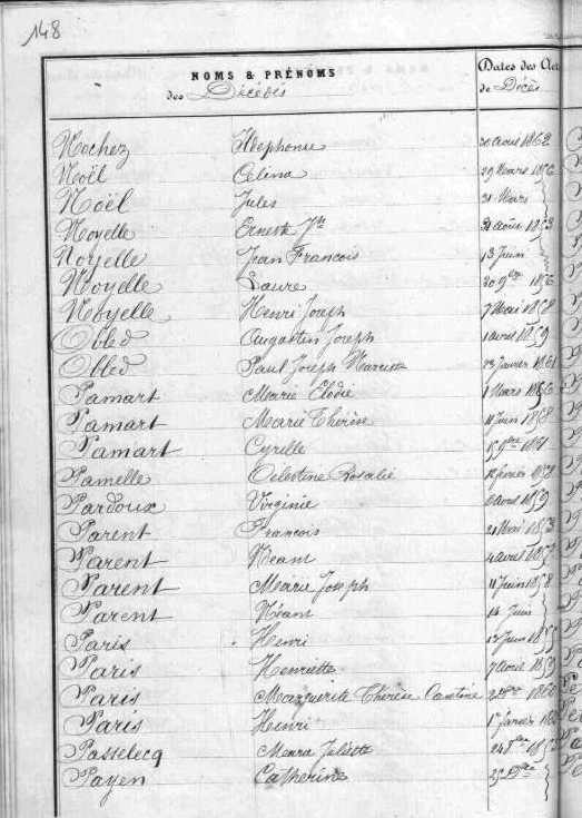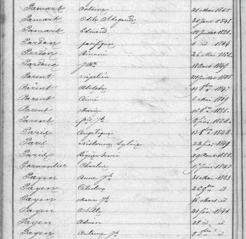 Père : PARIS Honoré François François Joseph ( 1752 - 1796 )