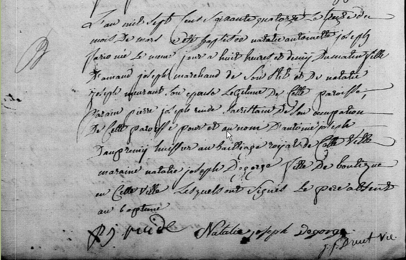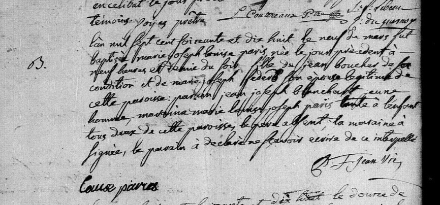 Témoin :PARIS Marie Louise Joseph ( ? - > 1778 )