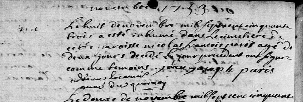 Témoin :PARIS Jean Joseph ( (c) 1723 - > 1763 )