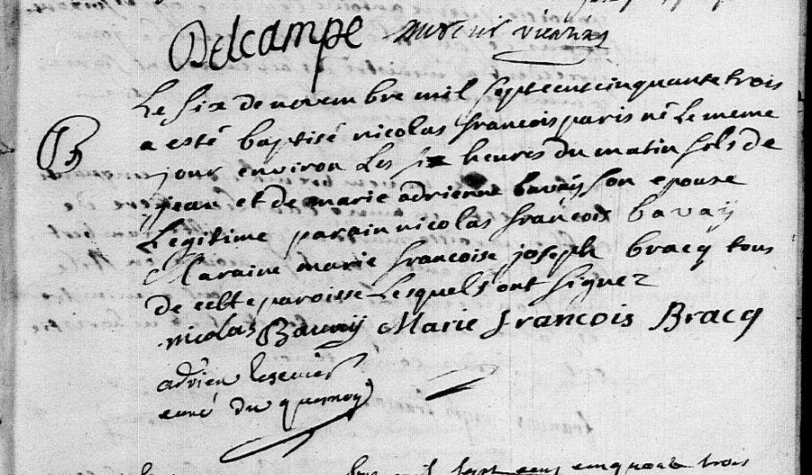Témoin :BAVAIS Nicolas François ( < 1726 - > 1763 )