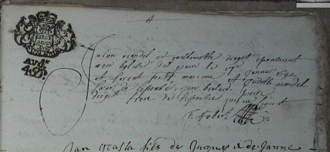 Père : ARANDEL Julien ( ? - <> 1673 & 1685 )