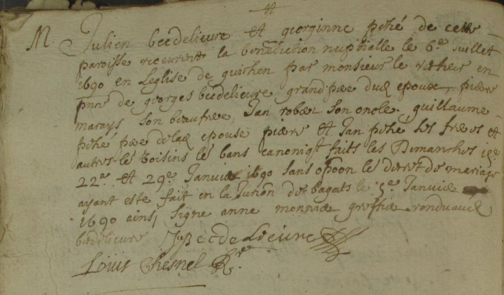 Mariage religieux : 6 juillet 1690 à Guichen 35580