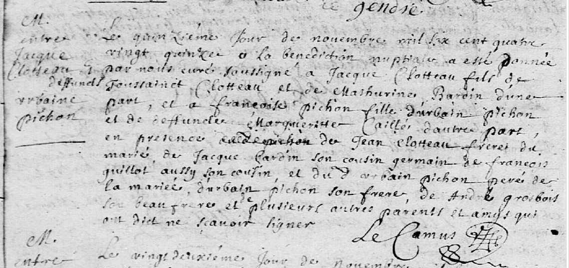 Mariage : 15 novembre 1695 à Montpollin 49150