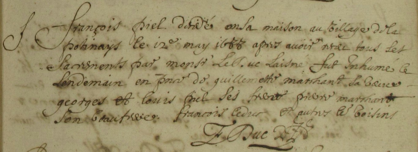il signe françois pielInhumation : après 12 octobre 1717 à Guichen 35580