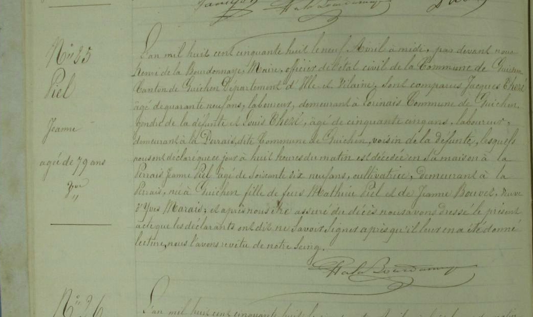 Décès : 9 avril 1858 à Guichen 35580