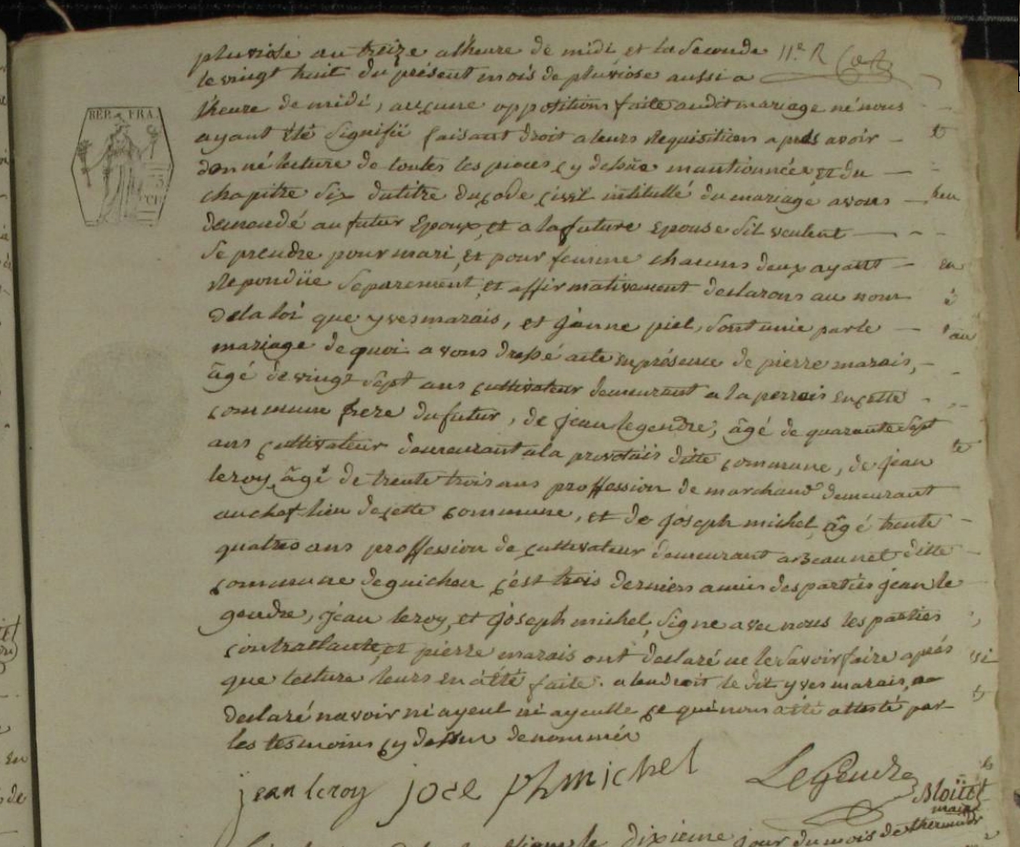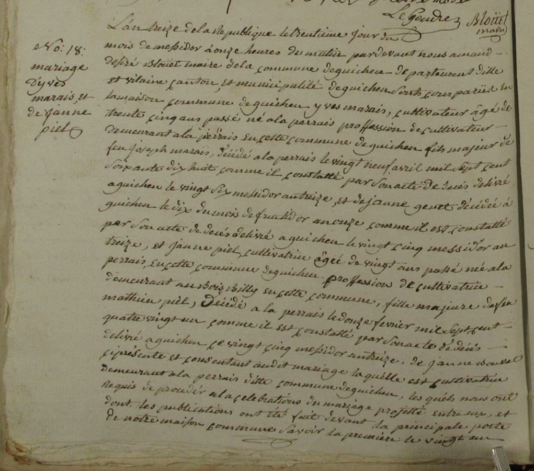 Mariage : 30 messidor an XIII à Guichen 35580