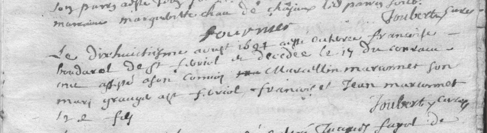 Baptême : 13 octobre 1747 à Marlhes 42660 Décès : 20 janvier 1830 à Saint-Romain-Lachalm 43620 Les Vialletons