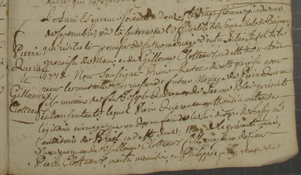 Fiançailles : 26 septembre 1772 à Lassy 35580
