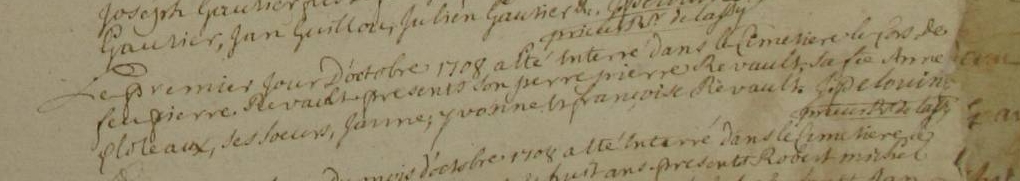 Autre enfant : REVAULT Pierre ( < 1683 - 1708 )