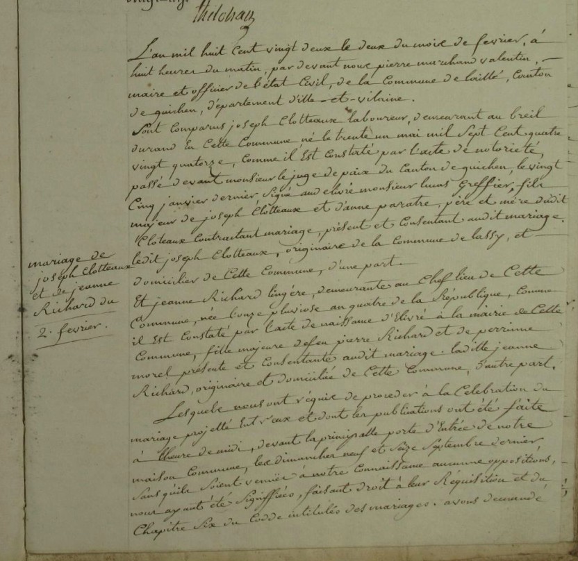 Mariage : 2 février 1822 à Laillé 35890