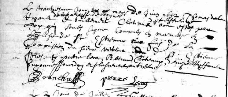 Témoins :CLOTEAULX Bertrand ( < 1645 - > 1660 )