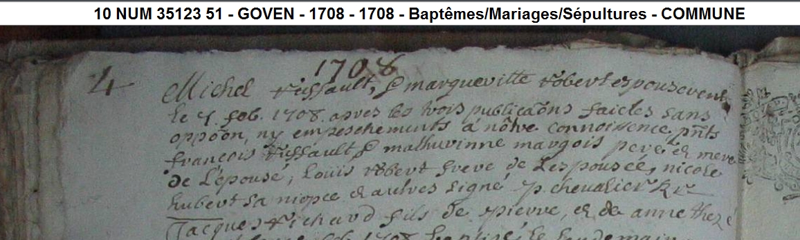 Mariage : 7 février 1708 à Goven 35580