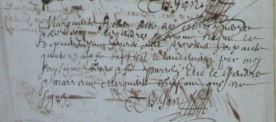 Baptême : avant J 1576 Inhumation : 27 janvier 1623 à Ruca 22550 Sous le chapitre de l'église paroissiale