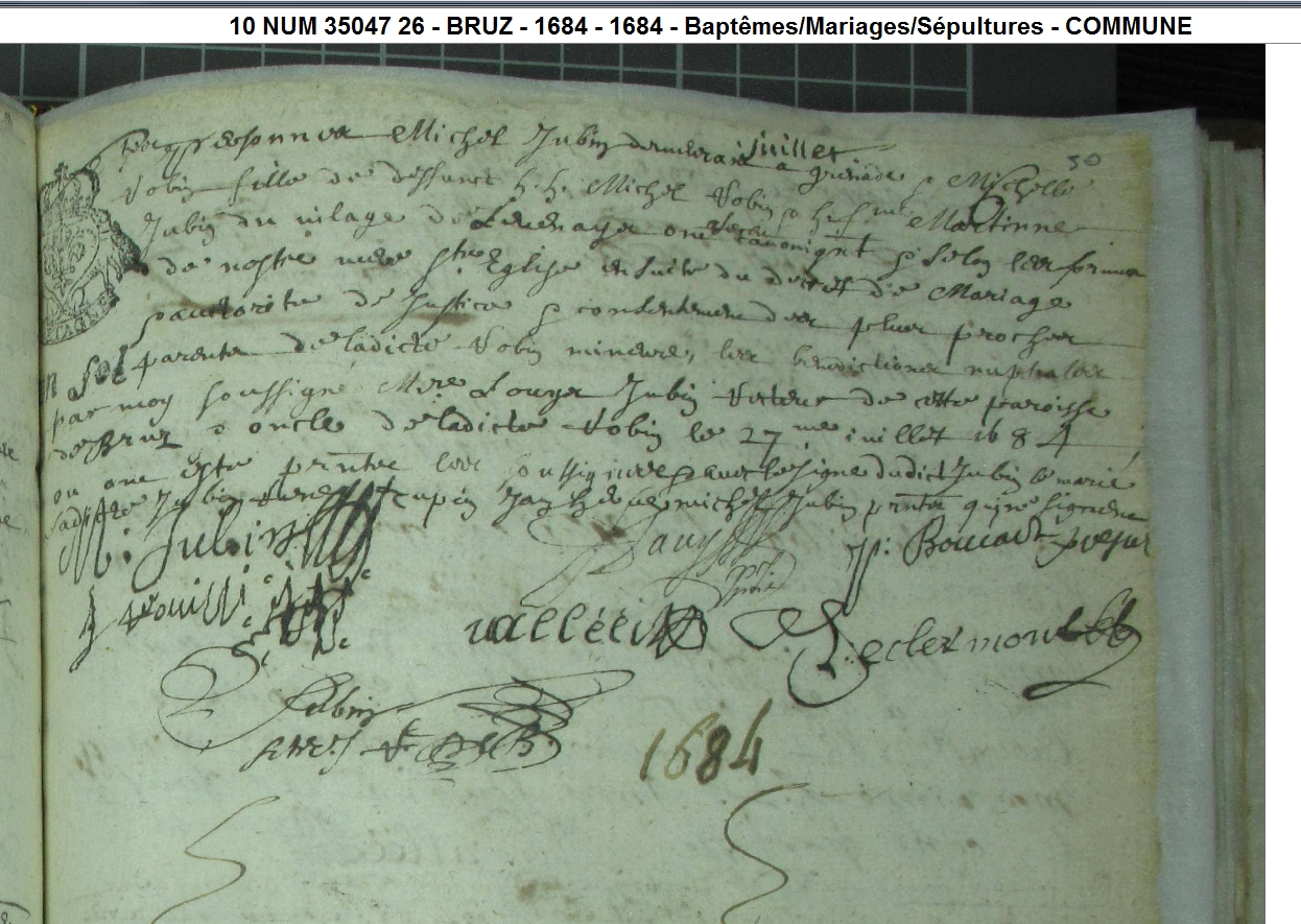 Mariage : 27 juillet 1684 à Bruz 35170