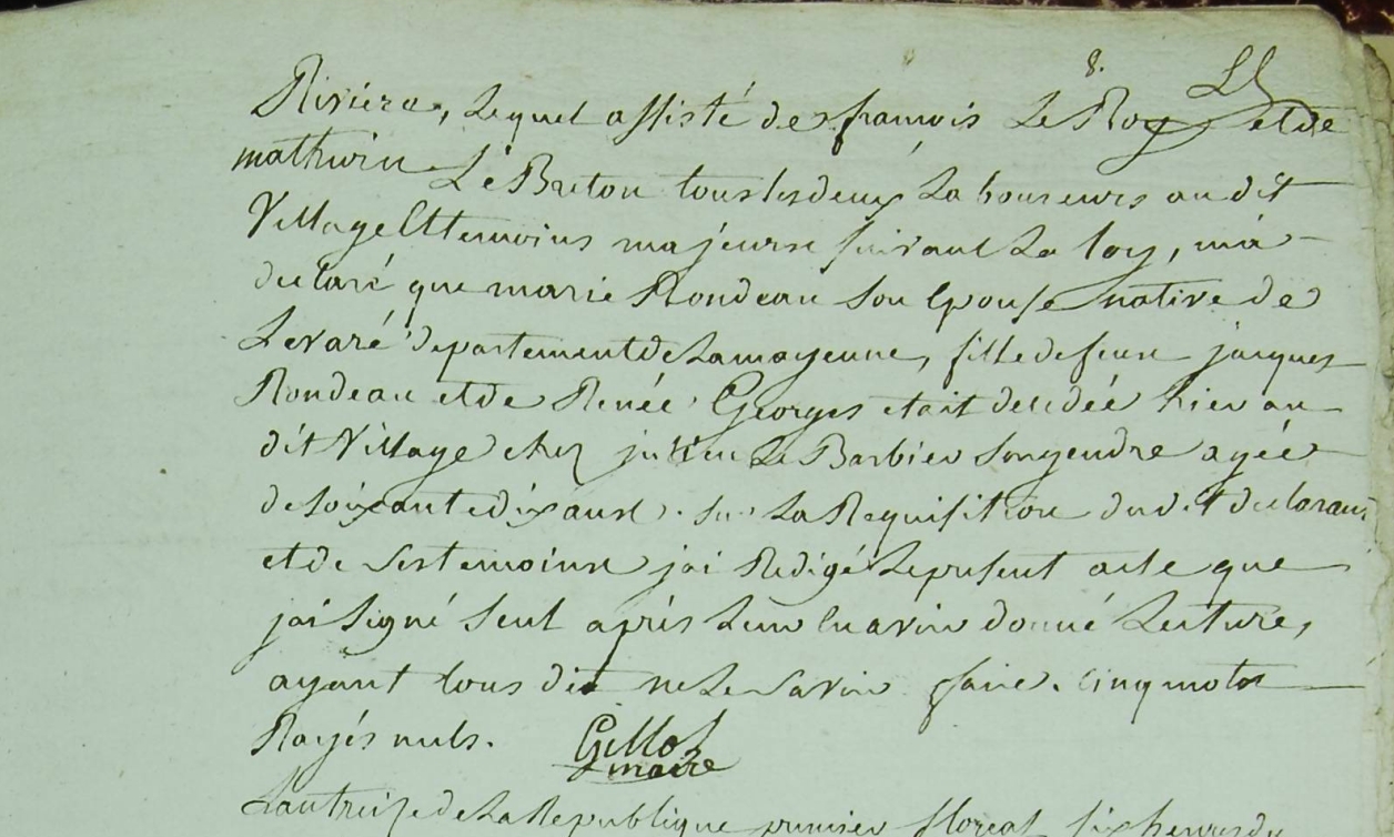 parain Julien François RONDEAU et Maraine Anne GEORGE qui signent