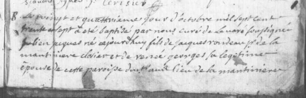 Naissance : 8 avril 1677 à Levaré 53120 Le grand Linardeul