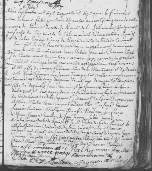 Père : RONDEAU Jacques ( 1704 - > 1757 )