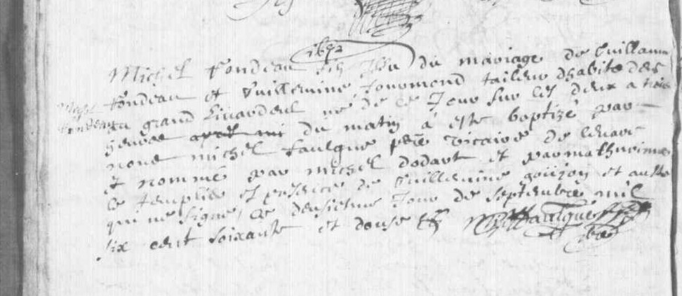 Père : RONDEAU Jacques (Guillaume) ( 1608 - > 1677 )