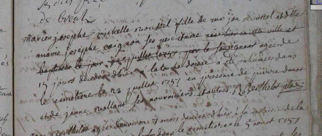 Naissance : vers 8 juillet 1757 à Bréal-Sous-Montfort 35310 Décès : 23 juillet 1757 à Bréal-Sous-Montfort 35310