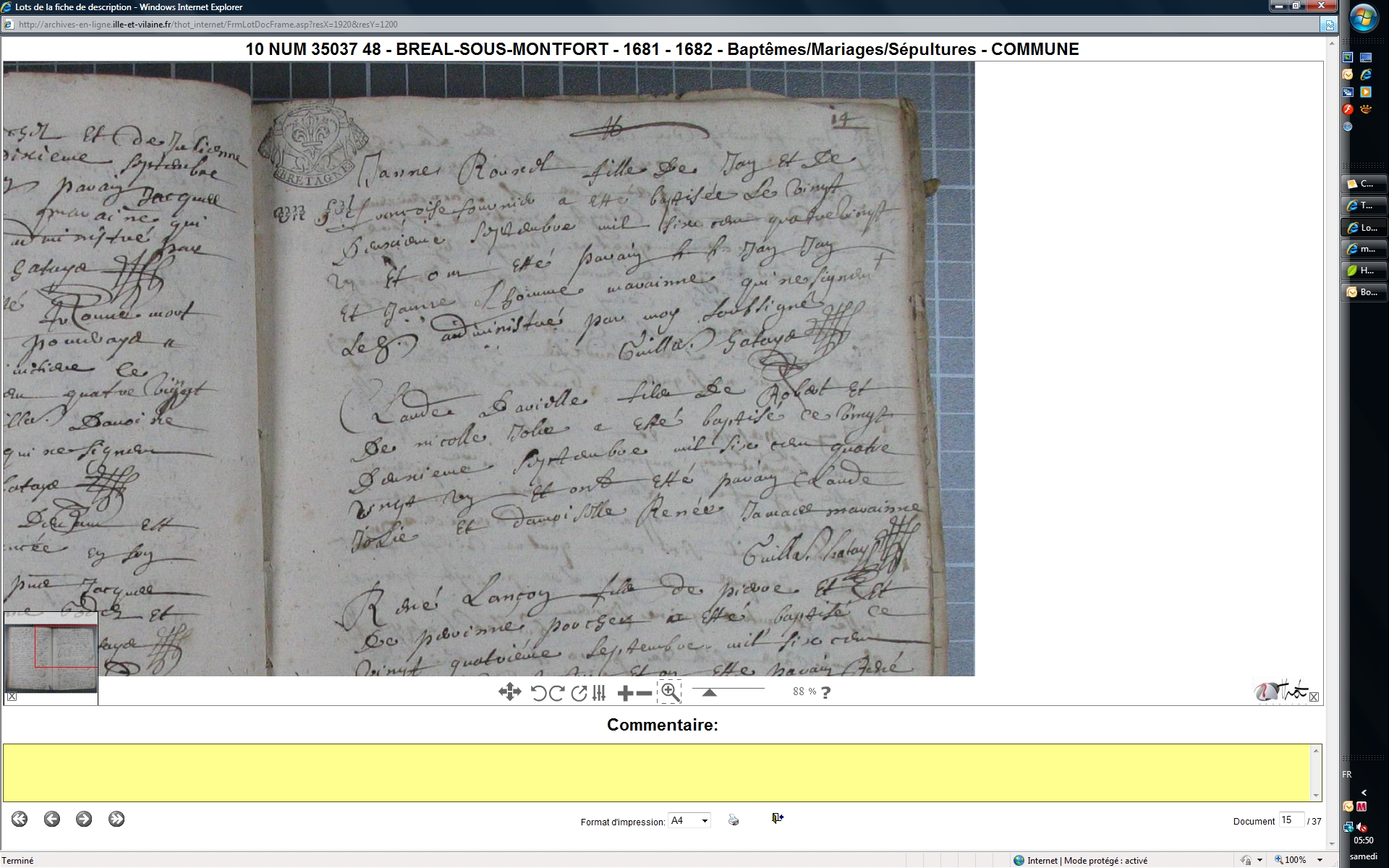 Naissance : 22 janvier 1659 à Bréal-Sous-Montfort 35310 Décès : à Bréal-Sous-Montfort 35310