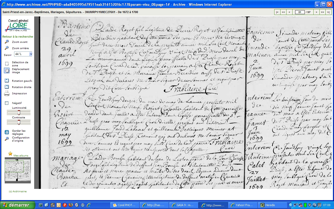 Autre baptême : 22 octobre 1712 à Saint-Priest-En-Jarez 42270