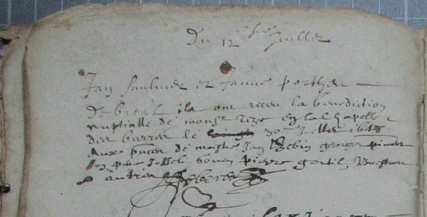 Mariage religieux : 30 juin 1616 à Le Verger 35160